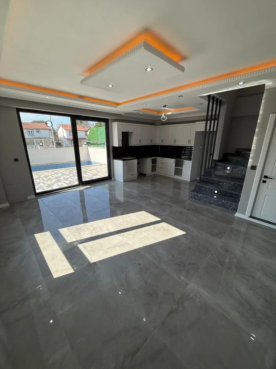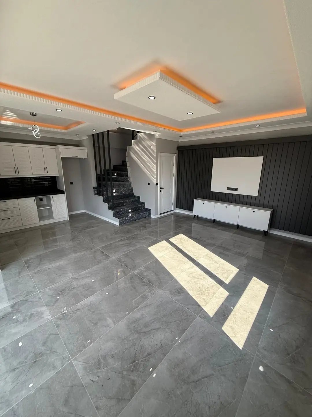 1. KAT: OTURMA ODASI, AMERİKAN MUTFAK, NİŞ KONSEPT TV ÜNİTESİ, TERAS, YARIM BANYO